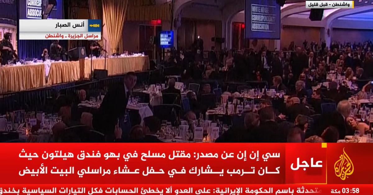 تداولت وسائل إعلام أميركية، فجر الأحد 26 ابريل/نيسان 2026، أنباء عن حادث أمني وقع خلال حفل عشاء مراسلي البيت الأبيض، الذي كان يُعقد في فندق هيلتون بالعاصمة الأميركية واشنطن، ما استدعى تدخل الأجهزة الأمنية وإجلاء الرئيس الأميركي دونالد ترامب ونائبه من القاعة.