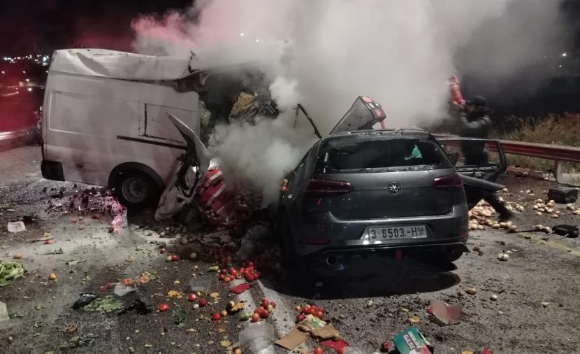 وقوع حادث سير مروع جنوب نابلس بالضفة الغربية